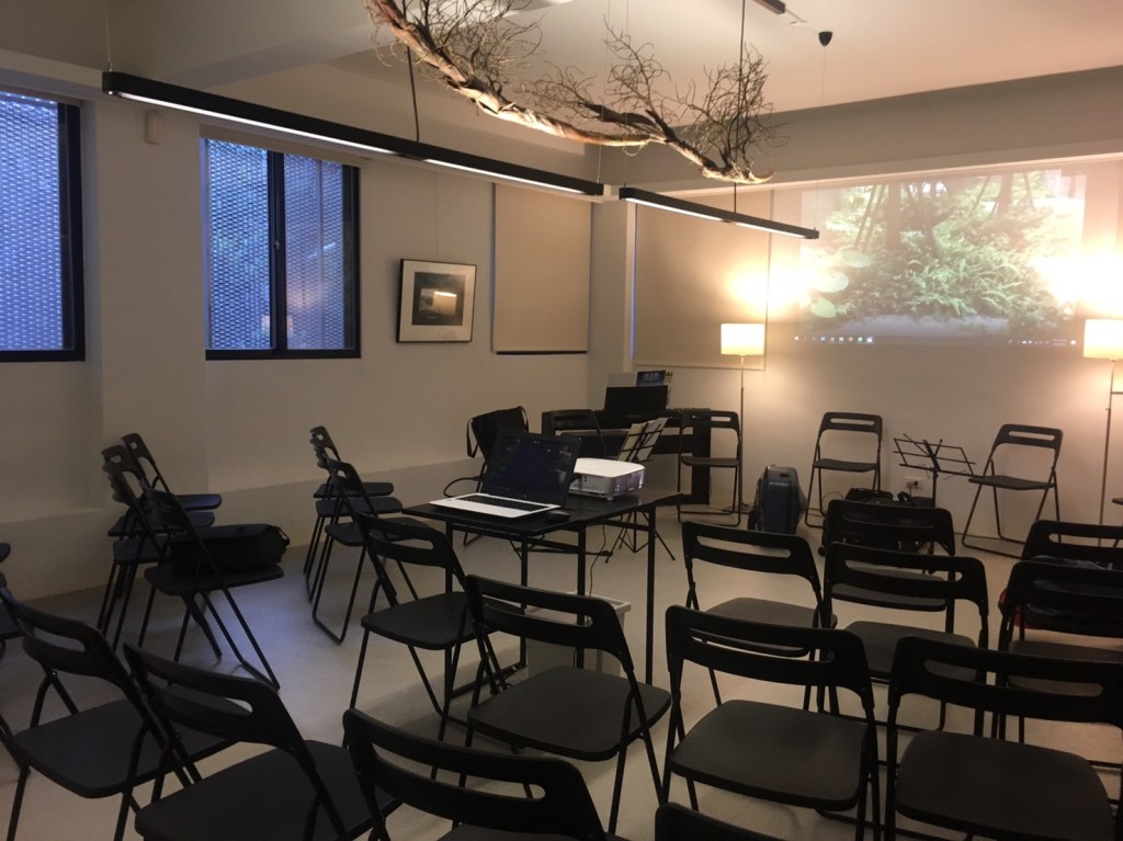 約莫七點時分 窗外樹影間逐漸昏暗的暮色 正如暗下的音樂廳燈光 宣示今晚的演出即將開始⋯