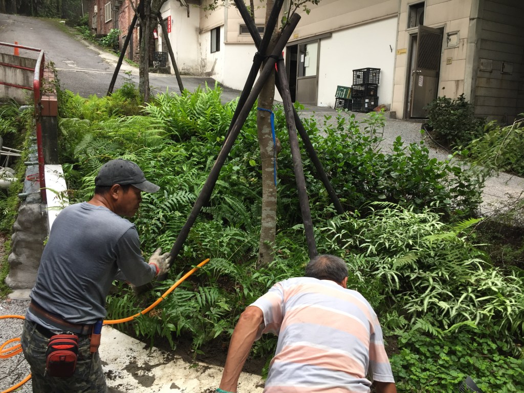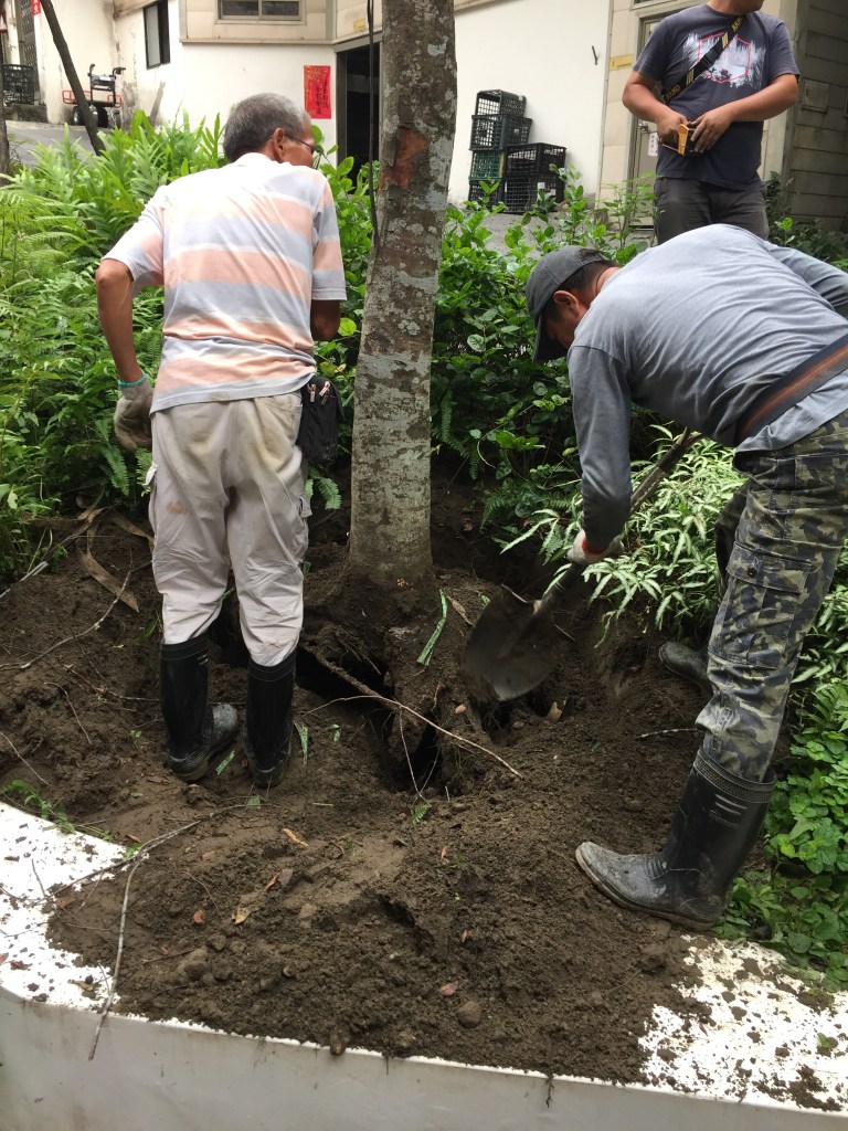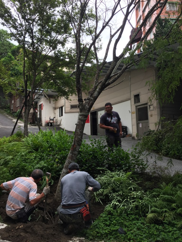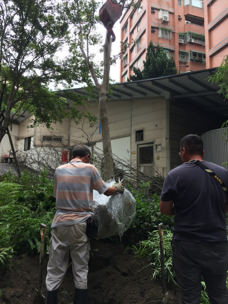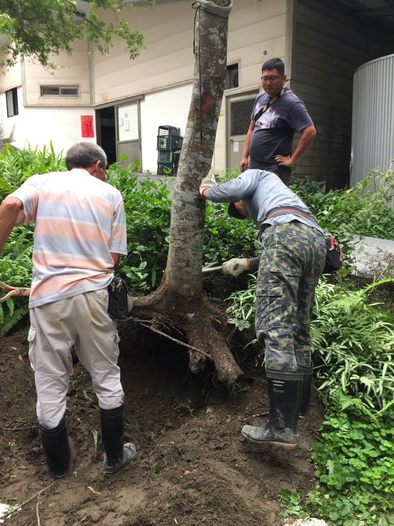 108年夏季,後棟林靜樓的部分病房工程開始動工,工務車頻繁的出入林靜樓的入口,病房裡不時地傳來刺耳吵雜的巨大聲響,周遭靠近道路的植栽也遭到無情的輾壓。大約是在工程快結束之時,位於林靜樓門口旁的植栽區,其中一棵最靠近入口通道的台灣櫸木快速地凋零,原本茂密的綠葉在短期間全部化為枯黃的葉子;又適逢颱風入境,強風一掃…,只剩下光禿禿的樹枝。我趕緊將照片傳給了小戴,他來看過之後也判斷不出枯黃的原因,直覺地認為不樂觀,應該無法存活。