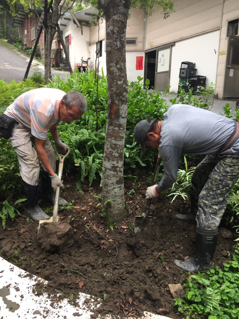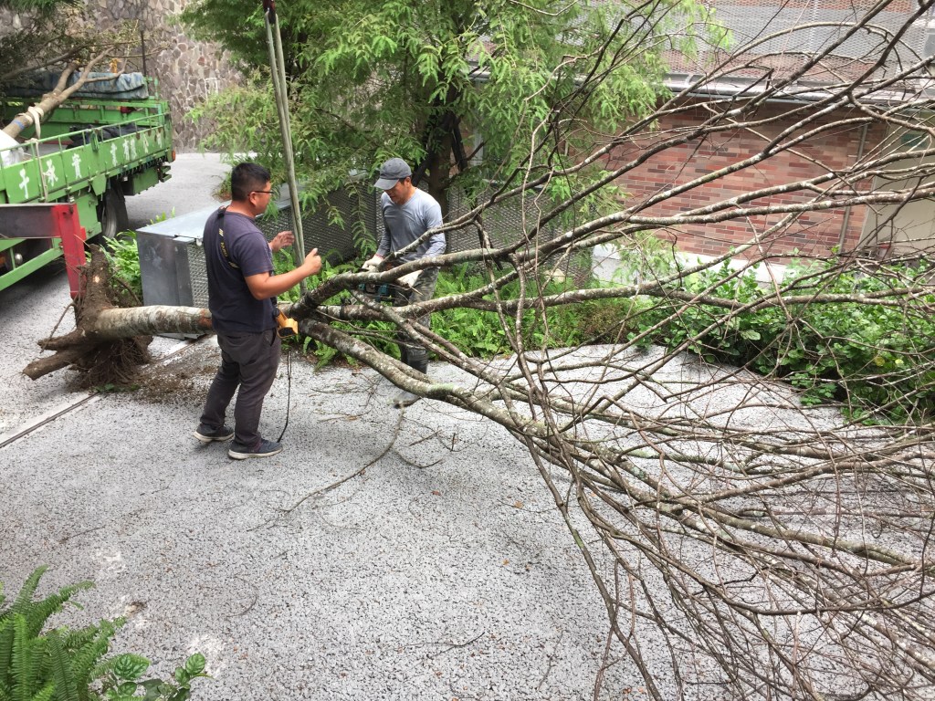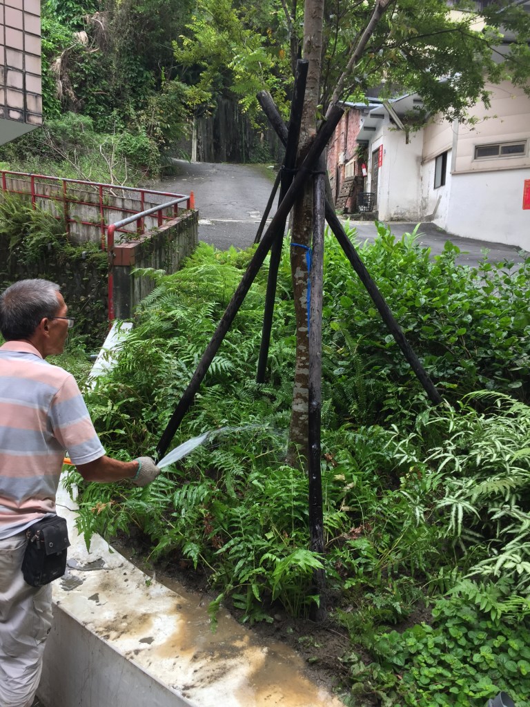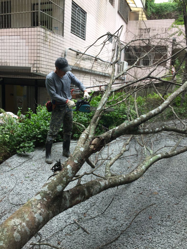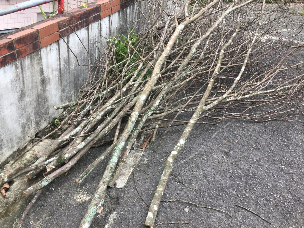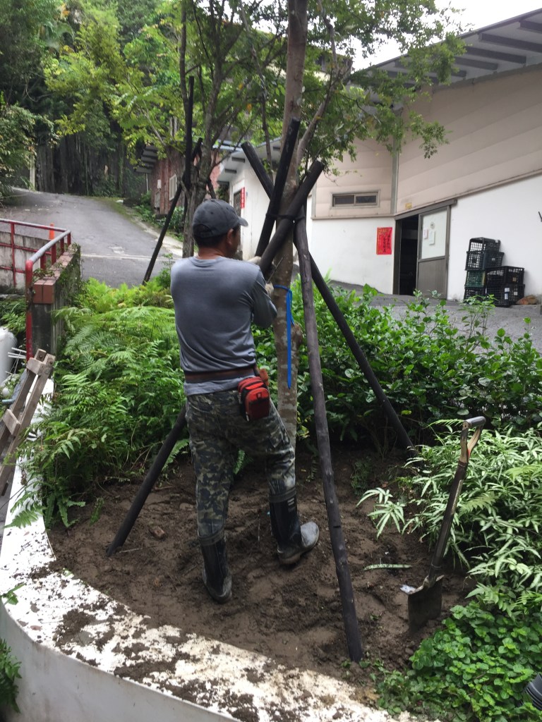 108年夏季,後棟林靜樓的部分病房工程開始動工,工務車頻繁的出入林靜樓的入口,病房裡不時地傳來刺耳吵雜的巨大聲響,周遭靠近道路的植栽也遭到無情的輾壓。大約是在工程快結束之時,位於林靜樓門口旁的植栽區,其中一棵最靠近入口通道的台灣櫸木快速地凋零,原本茂密的綠葉在短期間全部化為枯黃的葉子;又適逢颱風入境,強風一掃…,只剩下光禿禿的樹枝。我趕緊將照片傳給了小戴,他來看過之後也判斷不出枯黃的原因,直覺地認為不樂觀,應該無法存活。