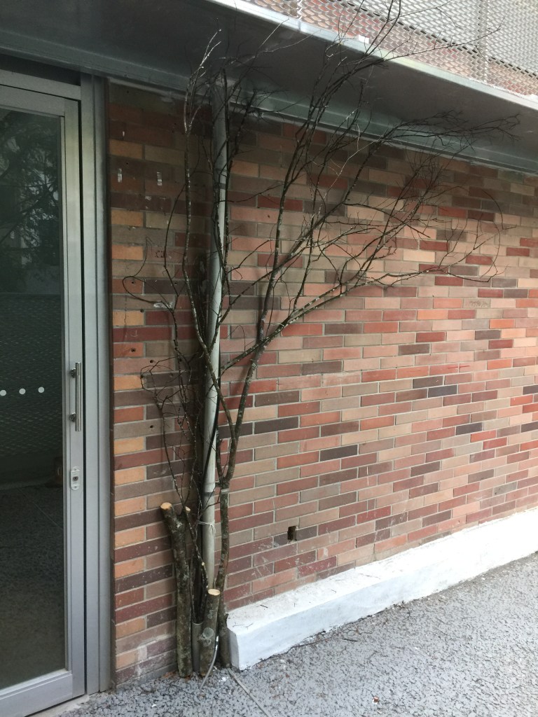 很遺憾,這顆櫸木無法安然地撐過這段工程期,無法再替我們遮風遮陽、淨化空氣、撫慰我們的身心,但俗話說:「人死留名、虎死留皮」,死掉的樹木更能成為可利用的資材!雖然我不懂得精巧的木工,無法將它化為精美的傢俱或工藝品,但也可利用它來發揮一些創意,粗略的拿它來妝點醫院,讓醫院更有一些溫度及自然元素,希望不要浪費了這棵台灣櫸木所遺留下來的資材,讓它的價值能繼續留存於此,也希望新植的櫸木能安然成長茁壯。